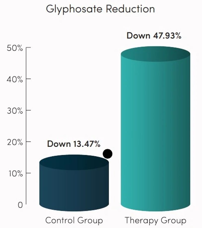 The group that used the IonCleanse by AMD reduced Glyphosate (a toxic chemical found in many herbicides) 34.46% more than the Control Group in just 12 sessions.